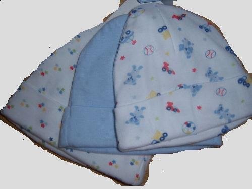 Gerber 100% Cotton (3) Cap Hats - Boy Colors - 0-6 months Feature