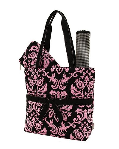 Diaper Bag Tote with Changing Pad Damask 3 Piece Set Black & Pink Review