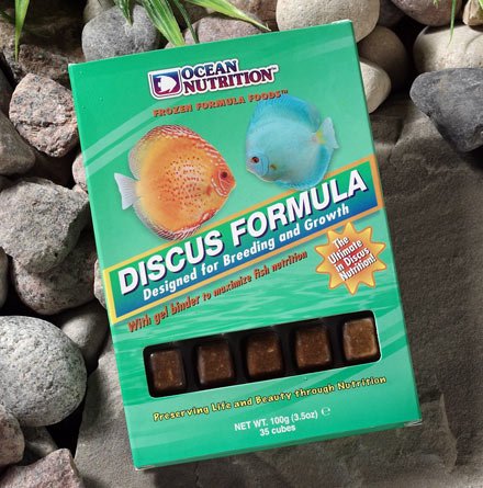 Specially formulated frozen fish food for healthy Discus fish Nutritious diet, excellent for breeding adults or growing out young Discus Extremely palatable food helps improve Discus coloration and vitality Nutritious frozen food for Discus designed for breeding and growth. Made only from fresh, top quality ingredients, Ocean Nutrition Discus Formula offers the ultimate in Discus nutrition. This extremely palatable formula contains the perfect balance of vegetable and animal ingredients to achieve balanced growth for younger fish. Also meets the food requirements of breeding adult Discus and helps improve Discus coloration and vitality. Ocean Nutrition Discus Formula contains a gel binder to maximize delivery of nutritional supplements. 35 count half inch frozen cubes. Please click on "More Information" for ingredients and guaranteed analysis.